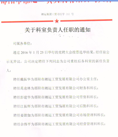 湘運集團工貿司行字(1)號